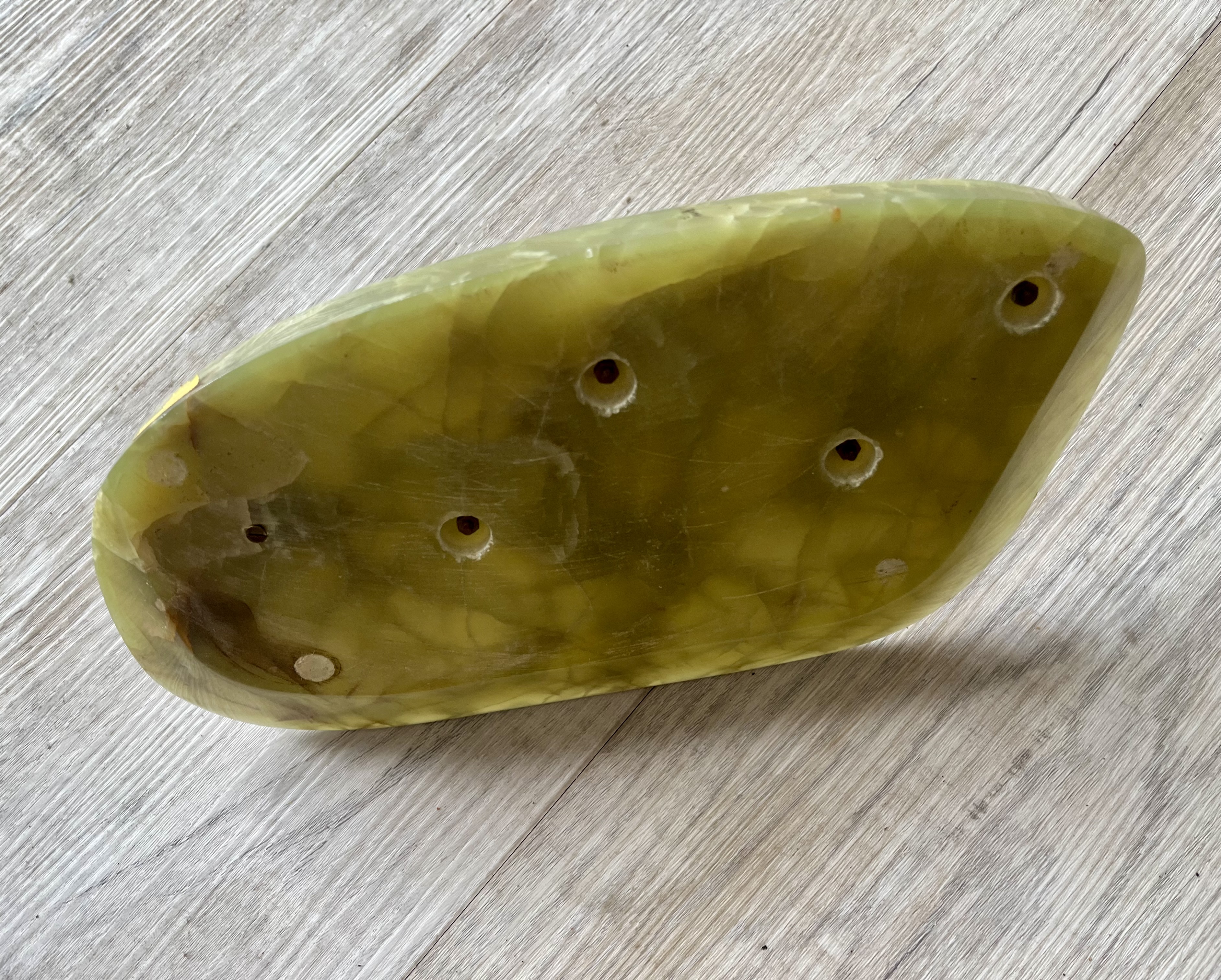 Schreibtischset und Aschenbecher aus Jade, schöne Patina..