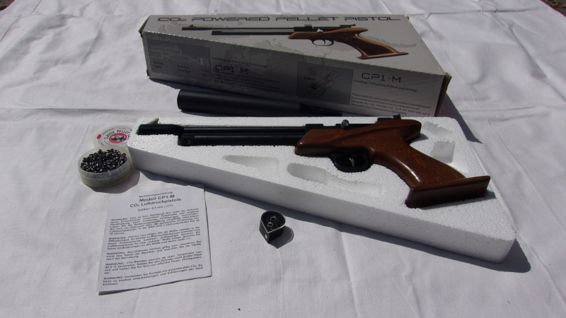 Ich biete Ihnen eine wenig geschossene CO2-Pistole des Herstellers GSG Modell CP1-M im Kaliber 4,5mm. Mit dabei die orginal Verpackung, Bedienungsanleitung, eine fast volle Dose Diabolos (sollten gut 300 Stück sein), 1 Magazin mit 9 Schuss Kapazität und ein Schalldämpfer mit passendem Adapter. Zum Montieren des Schalldämpfers muss der Kornsockel abgenommen werden, ein schießen über offene Visierung ist dann nicht mehr möglich. Über die integrierte 11mm Prismenschiene kann ein Leuchtpunktvisier oder Kurzwaffenglas montiert werden. Zum schießen sind noch handelsübliche 12 Gramm CO2-Kapseln erforderlich. Privatverkauf keine Garantie Rücknahme oder Nachverhandlung. Kein Versand ins Ausland. Der Versand erfolgt als versichertes Paket ausschlieslich an eine Adresse in Deutschland. No International shipment, i only ship to an Adress in Germany!