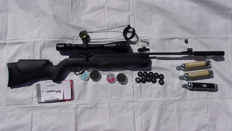 Ich biete Ihnen eine wenig geschossenes CO2 Gewehr des Herstellers Umarex Modell 850M2. Montiert ist ein SWS Schalldämpfer und ein Diana Zielfernrohr 6-24x50 AO mit rot/grün beleuchtbarem Duplexabsehen. Mit dabei 2 Anbruchdosen Diabolos (sollten gut 400 Stück sein), Anleitung, Gewindeschutzmutter für Lauf, Orginalkimme, 3 CO2 Kapseln mit je 88 Gramm und 10 teilweise unbenutzte Magazine Kapazität 8 Schuss. Privatverkauf keine Garantie Rücknahme oder Nachverhandlung. Kein Versand ins Ausland. Der Versand erfolgt als versichertes Paket ausschlieslich an eine Adresse in Deutschland. No International shipment, i only ship to an Adress in Germany!