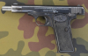 Halbautomatische Pistole, Selbstladepistole, Armeepistole, Polizeipistole, Ordonnanzwaffe, Militärwaffe, Rückstoßlader mit Masseverschluss und offener Visierung.