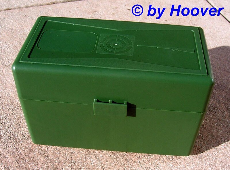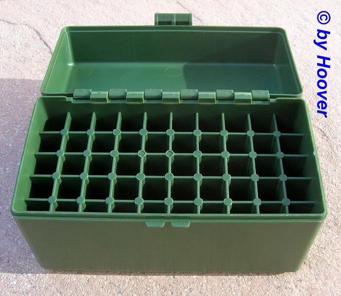 ... die Box hat einen Scharnierdeckel und Röhrchen bis ca. 75 grain!