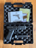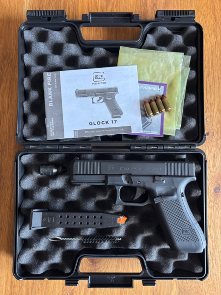Zur Auktion steht die vorgenannte Waffe im originalen Lieferumfang inkl. Koffer. Die Waffe wurde nicht geschossen, nur ausgestellt. Mit dabei sind vier echte Deko 9x19 Luger Patronen. Bei Abholung hätte ich noch 75 Schuss Knallpatronen anzubieten. Ab 160€ Gebot lege ich ein neues Holster mit bei.