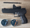 HW 40 PCA in 4,5 mm, mit Wechsellauf 5,5 mm, Walther Leuchtpunktzielgerät Competition 3 und 2 Dosen HN Kugeln in 4,5 und 5,5 mm ( nicht ganz voll). Die Waffe und das Zubehör wurden 2022 gekauft und sind selbstverständlich voll funktionstüchtig und in einem gepflegtem Zustand. Ab 18 Artikel, Vorlage des Personalausweises erforderlich. Versicherter Versand mit DHL, Alterssichtprüfung 18. Zahlung per Paypal oder Barzahlung bei Abholung in 49809 Lingen.