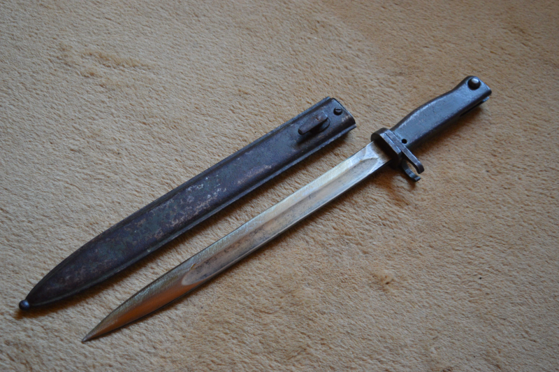 NOT-ERSATZBAJONETT IWK Auf dem Klingenrücken sowie auf der scheide ist noch schwach eine Abnahme zu erkennen, sehr guter zustand! Drücker gängig !siehe bilder.andere bilder auf anfrage!