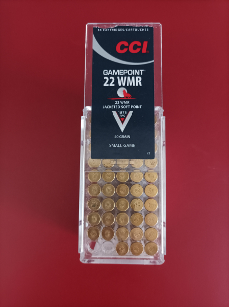 Verkaufe 48 Patronen CCI 22 WMR, Jacked Soft Point, 40 Grain, Kleinkaliber Munition.