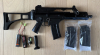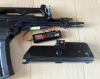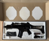 Das ASG SLV36 im Cal 6mm BB ist ein Nachbau des H&K G36C. Es hat eine lange Picatinny Topschiene mit eingebauter Viesierung. Ein einklappbarer Schaft macht sie ideal für Airsoftspiele. Die Innenkomponenten, Gearboxhülle und Zahnräder sind aus Metall. 3 Stk. 470 Schuss High-cap Magazine, wovon zwei nagelneu sind. ( mit Rechnung) Es gibt ein neues Accu, das originale Accu liegt dabei. Ein neues Ladekabel ist ebenfalls im Paket. Die drei Montagestifte aus Alu mit Ring wurden erneuert, da die Originalen fehlten. Die Waffe ist wohl mal schwarz überlackiert worden. Ansonsten funktioniert sie top. Dennoch verkaufe ich sie als Bastlerwaffe.