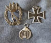 verkaufe Hier wegen Restauflösung meiner Reenactmentausrüstung 2.Wk, Wehrmacht einige Ehrenabzeichen. Es handelt sich dabei nicht um Originale, sondern um sehr gute Reproduktionen. Es handelt sich einmal um die sogenannte Ostmedaille oder Medaille "Winterschlacht im Osten 1941/42 oder wie man damals im Landserjargon sagte "Gefrierfleischorden. Dann einmal um das sogenannte Infanteriesturmabzeichen in Bronze und um ein Eisernes Kreuz 2. Klasse. Die jeweiligen Bänder für die Orden die an der Urniform getragen wurden, kann man sich ziemlich billig bei bestimmten Reenactmentshops dazukaufen.
