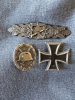 verkaufe Hier wegen Restauflösung meiner Reenactmentausrüstung 2.Wk, Wehrmacht einige Ehrenabzeichen. Es handelt sich dabei nicht um Originale, sondern um sehr gute Reproduktionen. Es handelt sich einmal um die sogenannte Infanterie-Nahkampfspange in Bronze. Dann einmal um das sogenannte Verwundetenabzeichen in Silber und um ein Eisernes Kreuz 1. Klasse.