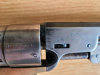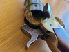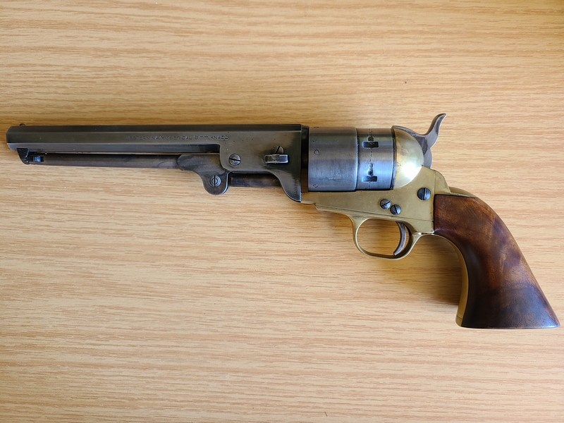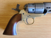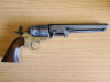 Authentischer Colt Navy 1851 von F LLI Pietta auf 9mm RK Platzpatronen umgebaut, mit PTB 714, Holzgriffschalen, Messing-Rahmen und restliche Teile Vollstahl, in authentischem Finish, Trockentest i.O., Besonderheit ist die Ladeklappe, die ein Herausfallen der Patronen bei senkrechtem Spannen verhindert. Perfekt für Westernfans. Wie bei Pietta bei umgebauten Original-Revolvern auch hier nicht zerlegbar. Zustand siehe Bilder.