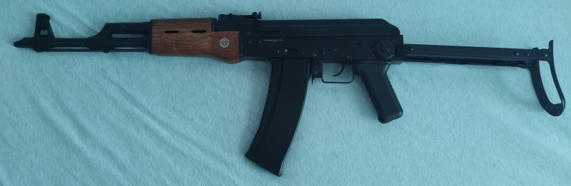 Biete hier, wegen Sammlungsauflösung, ein AK74 Gewehr von Wellfire an. Gas-Blowback im Kaliber 6mm BB. Vollmetall-Ausführung und Handschutz in Holzimitat. Waffe wurde direkt bei Händler auf Messe gekauft und besitzt keine Markierungen (außer Firmenlogo auf Handschutz) sowie kein F im Fünfeck. Full-Auto-Funktion gegeben.