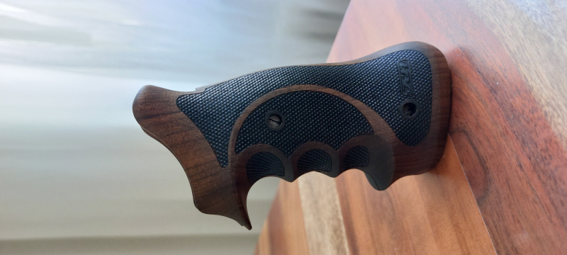 Hallo verkauft wird ein Karl Nill Griff für ein Smith&Wesson Revolver 629 der Griff wurde von mir an der Fischhaut aufwändig geschwärzt siehe Bilder was sehr schön aussieht. An dem Griff ist nix abgebrochen oder beschädigt,die Bezeichnung des Griff SW01XH08