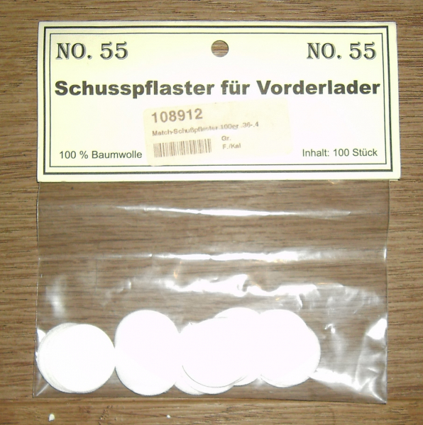 100 Stück Stifter´s Gunflints No. 55 Schusspflaster Kal. .36 - .40 Stärke: 0,28 mm Durchmesser: 23mm