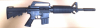 Der vordere Bereich des Gewehrs ist mit dem typischen und besonders langen Flash-Hider im XM177 Design versehen. Dieser besitzt das 14 mm- Linksgewinde und kann auch jederzeit abgeschraubt werden. Beim Außenlauf setzt Double Bell auf ein zweiteiliges Design mit ca. 11 Zoll Länge. Aus dem gleichen Material ist auch das Standard Frontvisier mit dekorativem Bajonetthalter. Das Visier kann auch originalgetreu in der Höhe verstellt werden. Der Handguard kommt im bekannten, runden Design aus Polymer-Verbundkunststoff und erinnert stark an M4 Handguards. Der Hohlraum unter dem Handguard wird bei diesem Gewehr als Akkufach genutzt. Passende Akkus sind 9.6V NiMH Twin-Type oder 7.4V oder 11.1V LiPo Two- / Tri-Panel Type Akkus (siehe Zubehör). Das Kabel der Waffe verfügt direkt über einen Standard Mini-Tam Akku-Anschluss.