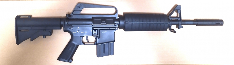 Die hintere Stocktube ist wie beim echten XM177E2 aus Aluminium gefertigt, besitzt allerdings fünf statt eigentlich zwei Einrastpositionen für den darauf laufenden Teleskopschaft. Originalgetreu ist der Schaft aus Verbundkunststoff gefertigt und kommt im kleineren Design - im Vergleich zu modernen M4A1 Carbine Varianten.
