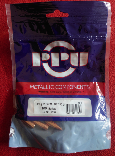 Ich bitte hier 100 Geschosse von PPU an. Sie sind im Kaliber .311, haben 150 Grain und sind FMJ BT.
