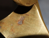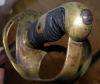 Interessanter seltener Säbel mit preußischem Abnahmestempel von 1856. Vermutlich Kavallerie Säbel für den Export. Das Stück war gewiss im "Einsatz", was kleinere Scharten in der Klinge vermuten lässt. Auch sind im Gefäß und der Scheide 6 Kerben eingeritzt, was evt. (aber das kann nur vermutet werden) auf "den siegreichen Gebrauch" hinweist!! Leicht gereingte blanke Klinge mit teils leichten Rostnärbchen, Hersteller Lüneschloss Solingen. Länge ohne Gefäß ca. 90 cm. Messinggefäß, ca. 14 cm. Leicht gereinigte blanke Klinge mit teils leichten Rostnärbchen, Hersteller Lüneschloss Solingen, Gefäß mit 2 Spangen, Holzgriff mit Leder, oben Griffwicklung leicht gelöst. Eisenscheide mit 2 Ringen, Flugrostig mit Resten der Originallackierung.