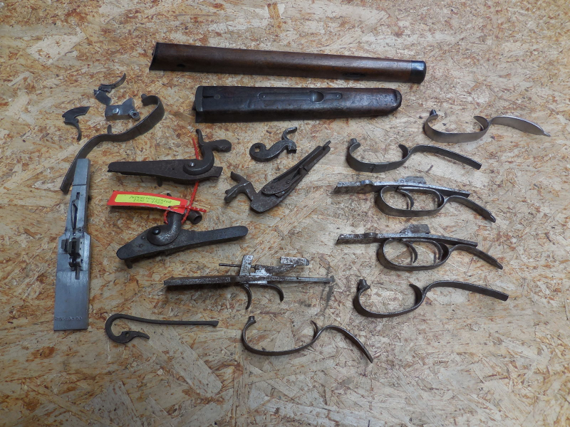 Großes Lot Freie Teile für Flinten und Vorderlader, Abzugsgruppen, Perkussion, Hähne, Schaftteile