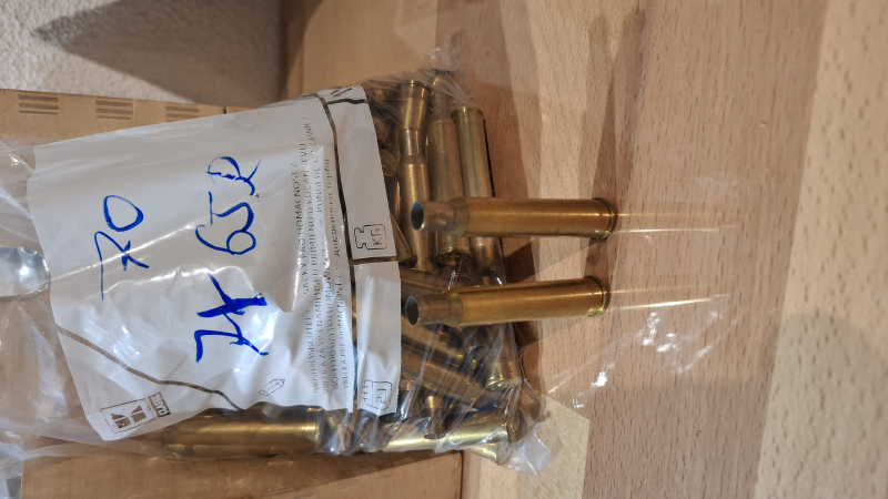 Geboten werden 70 Hülsen 7x65R, einmal abgefeuert, nicht gereinigt, verschiedene Hersteller, hauptsächlich S&B.