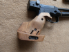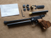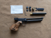 Gechtsgriff mittelgross, Waffe schiesst tadellos und störungsfrei mit sehr gutem Druck (gemessen 172m/s!!). Dabei sind gemäss der Abb. Fülladapter, Spannschlüssel, Ersatzkartusche und Abblasventile.