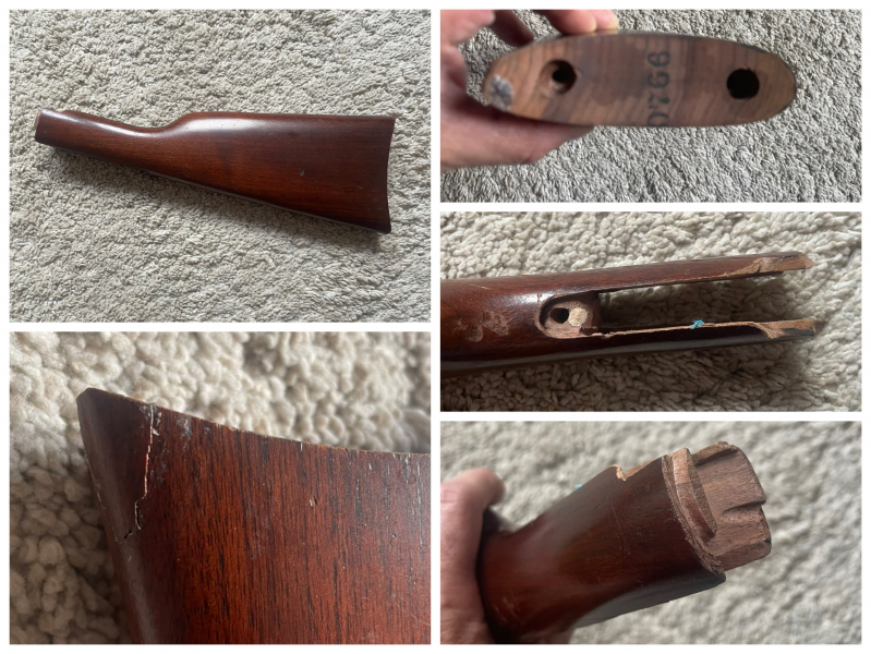 der Schaft wurde vom Vorbesitzer unfachmännisch geklebt. Siehe Fotos: die untere Ecke hinten am Schaft.