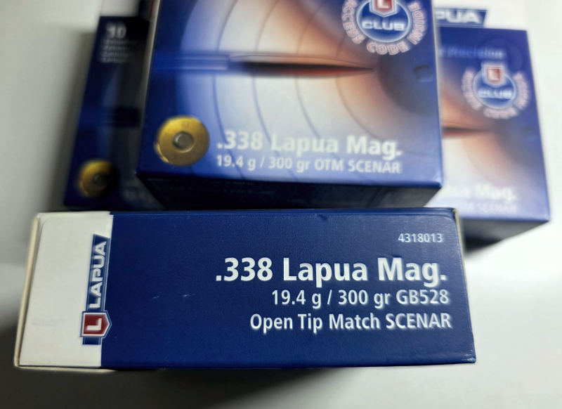 Verkaufe 4 Packungen a 10 Patronen von Typ Lapua .338 Lapua Mag. 300GR Scenar GB528 Kommen alle aus gleicher Charge. Es handelt sich um einen Privatverkauf - Umtaucsh, Rückgabe und Gewährleistung ausgeschlossen.