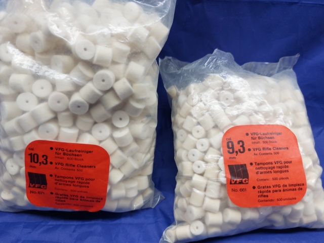 Sie bieten auf eine Packung VFG Filz Laufreiniger mit 500 Stück in 9,3mm oder 10,3 Filz Pfropfen, Laufpflege, VFG-Laufreiniger aus Spezialfilz für Kal. 9,3mm Bestens geeignet für 9mm/.38, .357 Waffen. Die 10,3 mm habe ich für 45er Pistole verwendet. Nach der Ersteigerung teilen Sie mir bitte mit, welche Größe ich versenden soll. Beide Beutel habe ich schon geöffnet, es sind aber 500 Stück Filz Pfropfen drin.