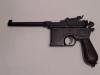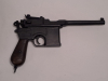 Nicht schussfähiger Nachbau einer Mauser Selbstladepistole aus Metall mit Kunststoffgriffschalen und simulierendem Lade- und Zündmechanismus.