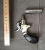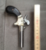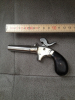 Kleiner handlicher Derringer mit Percussionszündung im Kaliber 32. Der Lauf ist beschossen und abschraubbar, also ersetzbar durch ein anderes Kaliber. Der Derringer funktioniert und hält in allen Hahnrasten zuverlässig, Ein Magnet hält überall, also keine billige Ausführung, das Teil ist aus Stahl!