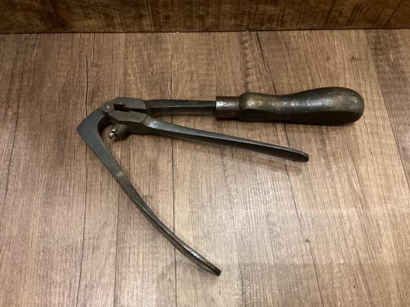 Verkauft wird hier eine Zündhütchenzange aus Stahl mit Holzgriff