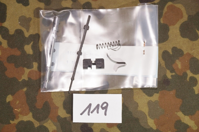 Achtung aufgepasst: Walther P1 Pistolen Ersatzteile Konvolut aus ehmaligen BW-Beständen. Zustand, siehe Foto. Der Schlagbolzen noch in der original Depotverpackung mit Versorgungsnummer (KANN leichten Flugrost haben). Es handelt sich bei allen von uns angebotenen Ersatzteilen um FREI VERKÄUFLICHE TEILE. Sie erhalten exakt die abgebildeten Ersatzteile. Alle Angaben nach bestem Wissen und Gewissen. Bitte beachten Sie auch unsere weiteren Auktionen. Viel Spass beim Bieten. Versand ausserhalb Deutschlands 22 Euro.