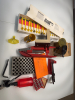 Zur Auktion steht eine Wiederlade Grundausrüstung in gutem Zustand. Die Presse ist eine Handpresse die ich umgebaut habe, man kann sie jetzt auch an einem Tisch anschrauben oder mit Schraubzwingen befestigen. Das Set besteht aus: -Lee Pulverwaage - Lee Pulverfüller mit Tischständer - Hülsenhalter Set - Zündhütchen Handsetzgerät für small und large Zündhütchen – einem Trickler – Ladebrett – Fettkissen sehr stark gebraucht - Trichter und einem Lee Safety Powder Scale Set. Siehe Bild.