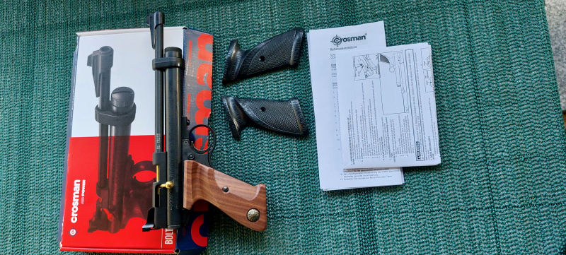 Verkaufe neuwertigeCrosman Modell 2240 - 5,5 mm Diabolo Co2-Pistole (P18) mit sehr schönen Holzgriffschalen. Originalgriffschalen anbei.Waffe wurde im März 2025 gekauft. Originalrechnung, plus Anleitung und Verpackung anbei.