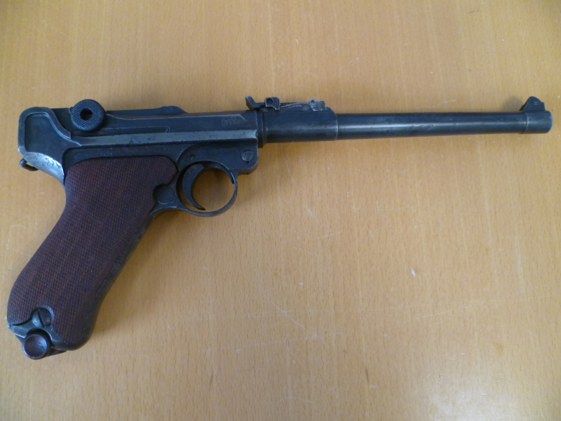 Magazin trägt die Nummer 1077 und +, ist jedoch passen zur Waffe - gefalzt, vernickelt und Holzboden mit Nummer.