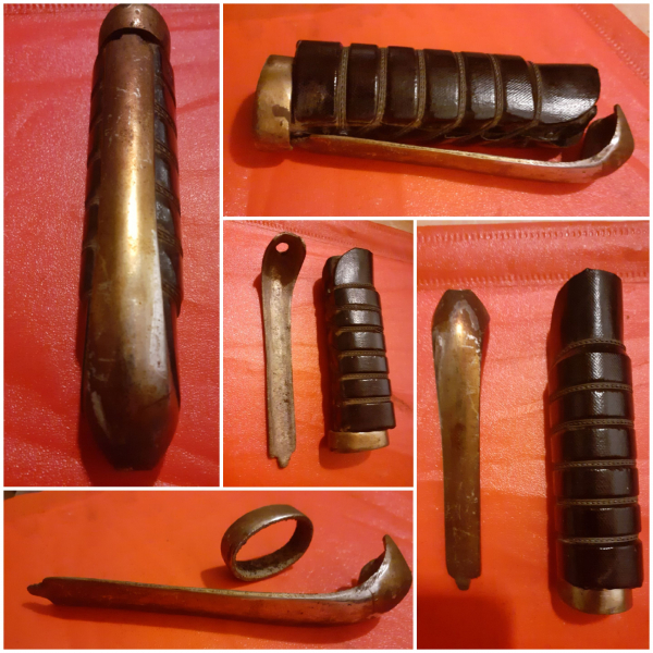 Griffstück aus Holz, bezogen mit Drahtwicklung.