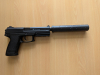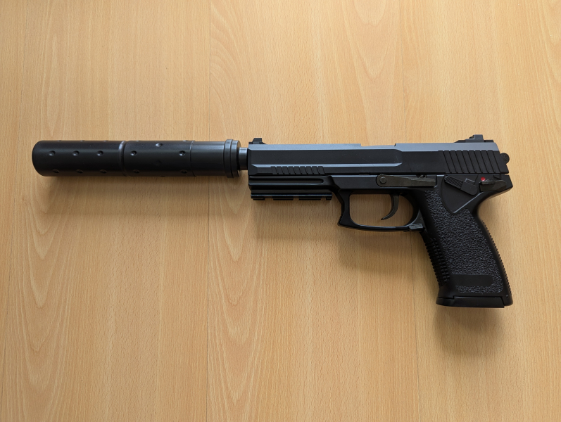 Biete hier eine Airsoft-Pistole Gas, NBB, ASG MK23 mit neuestem Novritsch-Magazin an. Das ASG-Magazin war undicht und ich habe mir vor kurzem dieses schicken lassen, was wesentlich besser ist. Die Rechnung liegt bei. Die Waffe hat kleinere Gebrauchsspuren am Schlitten, weil ich das Hop-Up einstellen wollte, wie bei YouTube auf einigen Videos zu sehen ist. Das ist mir aber nicht gelungen, auch nicht das Auswechseln des Maple Leafs, welches ich hier beilege.