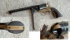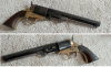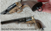 Zum Verkauf steht ein Western Navy mit Messingrahmen, Kopie des Schneider & Glassick aus den Südstaaten. Um die Optik abzurunden, wurde am Buttstrap ein CSA eingestempelt. Der Revolver hat starke Gebrauchsspuren. Die Brünierung ist dennoch überwiegend gut erhalten. Die Technik läuft super. Alles greift perfekt ineinander. Das Modell hat eine Ladeklappe und einen Stoßboden aus Stahl. Unzerlegbar. Der Rahmen hat eine tolle senfgelbe Patina. Wer das nicht mag, kann sie wegpolieren. Wäre aber schade. Die Griffe sind geölt. Weitere Infos zu der PTB 714 gibt es im Netz. Fragen werden immer beantwortet. Insgesamt macht das Ding einen tollen, bulligen Eindruck. Auf dem dritten Bild ist ein Wechselgriff montiert. Er gehört nicht zum Lieferumfang. Für 100€ Aufpreis gibt es ihn zusätzlich dazu. Dieser ist größer und hat einen weiteren Abzugsbügel, wo.auch größere Finger (Handschuhe) durchpassen. Keine Garantie oder Rücknahme, da Privatverkauf.