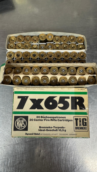 Verkauft werden hier 60 Hülsen von RWS im Kaliber 7x65R. Sie stammen aus den Nachlass eines Freundes. Teilweise entzündert und gereinigt. Guter Zustand, bestes Wiederladermaterial. Keine eine Rücknahme keine Garantie. Bitte beachtet auch meine anderen Auktionen oder folgt mir in den Einstellungen. Ich stelle hier immer wieder was ein. Da muss aus Platzmangel noch so einiges weg aus den Beständen. Die 60 Hülsen kommen lose ohne die Verpackungen.