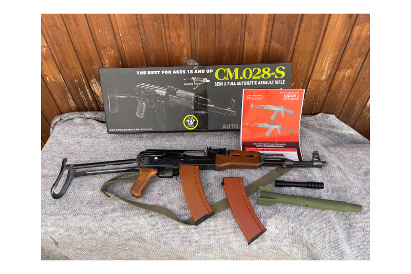 Schöner assozialer Schießprügel für böse Buben. Unterklappschaft AK47 Replica / Nachbau als Softair - AEG System, 6mm BB, 0,5 Joule Schussenergie -> Frei ab 14 Jahre in Deutschland, Schießt FULLAUTO UND HALBAUTO, macht richtig Spass, sehr authentisches Aussehen durch optische Alterung und die Haptik. Mit original OVP, 2 Magazine -> Mid und High Cap, 1x Abschussrohr M70 M14 Linksgewinde, 1x Anti Tank Rifle Granate -> NUR DEKO!!! - aber sieht *geil* aus auf dem Spielfeld ;-). Softair funktioniert einwandfrei. Anscheinswaffe, Verkauf nur an Personen über 18Jahre, Versand erfolgt umgehend nach Zahlungseingang. Für zum Schießen wird noch ein Akku benötigt und Munition -> bekommt man alles bei K&Z oder einfach googeln.