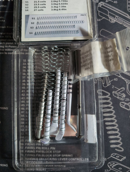 Für CZ Shadow 1 bzw. CZ 75 SP-01 : Ein DPM Rückstoßfeder-System zur Anpassung - das Maximal-System mit 12 möglichen Kombinationen zur Anpassung des Rückstoßverhaltens an Munition, Schützen, Grifffestigkeit, Auswurfweite, usw. Z.B. für IPSC aber auch Präzi-Disziplinen um "limb wrist" - also schwache Haltekraft - auszugleichen - die ansonsten zu Auswurfstörungen führen kann, Anpassen an einhändige und zweihändige Disziplinen, Dubletten, usw.