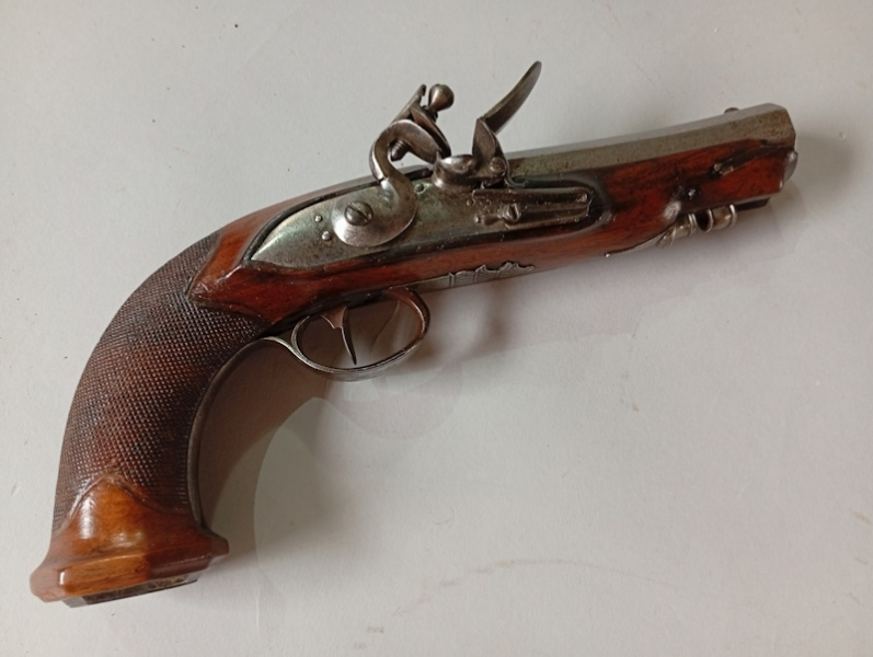 Kleine französische Offizierspistole mit Steinschloss. Epoche: Erstes Kaiserreich.