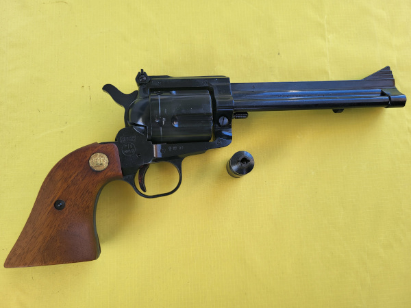 Sie bieten auf einen Reck Western Revolver Modell 45 Magnum im Cal. 45 Short, Holzgriffschalen mit eingelassenem Reck Emblem,