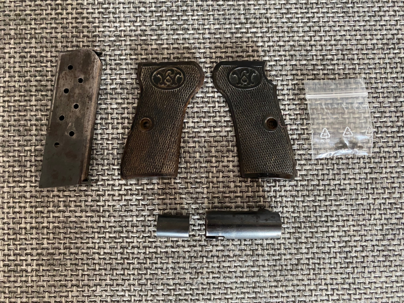 Ich biete ein Konvolut von Walther-Ersatzteilen für das Mod. 7 mit leichten Gebrauchsspuren an. Durch behutsame Reinigung leicht aufzuwerten. Das Konvolut besteht aus einem originalen Magazin, Kal. 6,35 mm mit tadelloser Funktion. Einem Paar originaler Griffschalen incl. der originalen Befestigungsschrauben. Die rechte Griffschale hat hier einen feinen Kratzer, jedoch ist dies kein durchgehender Bruch. Weiterhin beinhaltet das Konvolut eine originale vordere Schlittenverriegelungsbuchse und eine originale Verschlussfederhaltebuchse. Die Versandkostenpauschale für Deutschland beträgt 10,- Euro und für Österreich 20,- Euro. Der Versand erfolgt mit versichertem Paket und Sendungsnummer. Privatverkauf ohne Garantie und ohne Rückgaberecht.