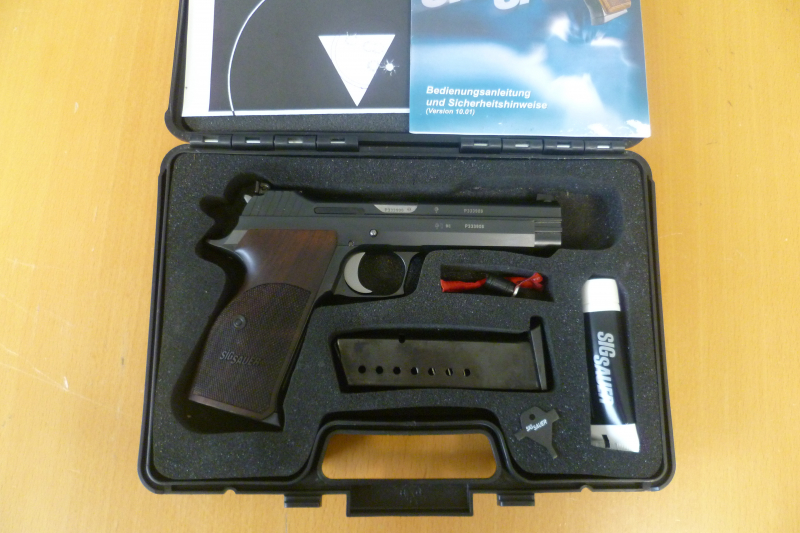 Zubehör: Originalkoffer, Ersatzmagazin, Werkzeugschlüsselchen, Waffenfett, Bedienungsanleitung und Schussbild