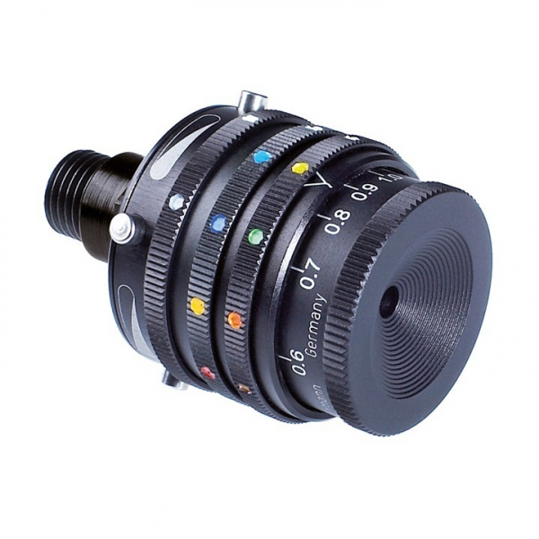 1. Filterrad: gelb, orange, hellgrün, mittelgrau, dunkelgrau, amethyst