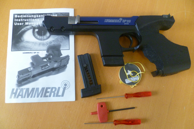 Zubehör: Ersatzmagazin, Werkzeug, Schußbild und Bedienungsanleitung