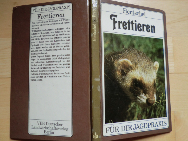 FRETTIEREN - Für die Jagdpraxus - von Peter Hentschel, Deutscher Landwitrtschaftverlag Berlin 1986, 112 Seiten mit vielen Abbildungen - Inhalt u.a.: Bilogie des Frettchens / Haltung von Frettchen / Zucht und Aufzucht / Krankheiten / Das Wildkaninchen / Frettieren mit Netzen, vor Schützen zur Beizjagd / Ausrüstung / und anderes mehr - Guter Zustand