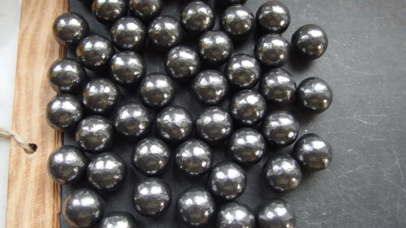Durch das Trommeln wird das überschüssige Material des Gussbutzens umgeformt. Die Form der Kugel wird dadurch leicht unrund. Dies ist technisch bedingt nicht anders möglich und kein Reklamationsgrund. Der Kugeldurchmesser bewegt sich in einem Toleranzbereich von ca. ± 15 Hundertstel.
