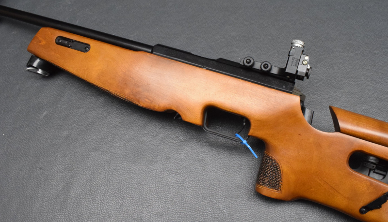 19 mm dicker Matchlauf, Diopter, Korntunnel,11 mm Montageschiene, Mündungsklappe, Gradezugverschluß, einstellbarer Matchabzug. Schaft aus lackiertem Holz mit Griff, Fischhaut, Backe,