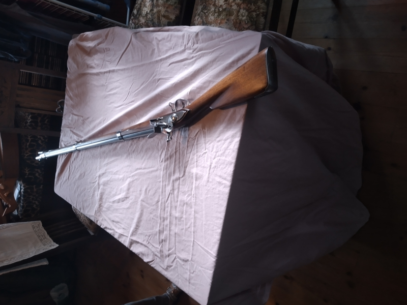 1x Steinschloßmuskete cal 69 Hersteller oder Händler Navy Arms Länge 152cm Gewicht 4,1kg kein Replika aus Indien.Modell müsste Französisch sein charleville Hersteller laut Hörensagen wohl Japan.