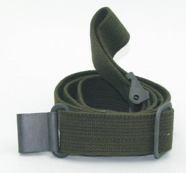 neuer Trageriemen aus webbing in oliv repro mit allen Metallschnallen für den US Rifle Garand auf antik getrimmt